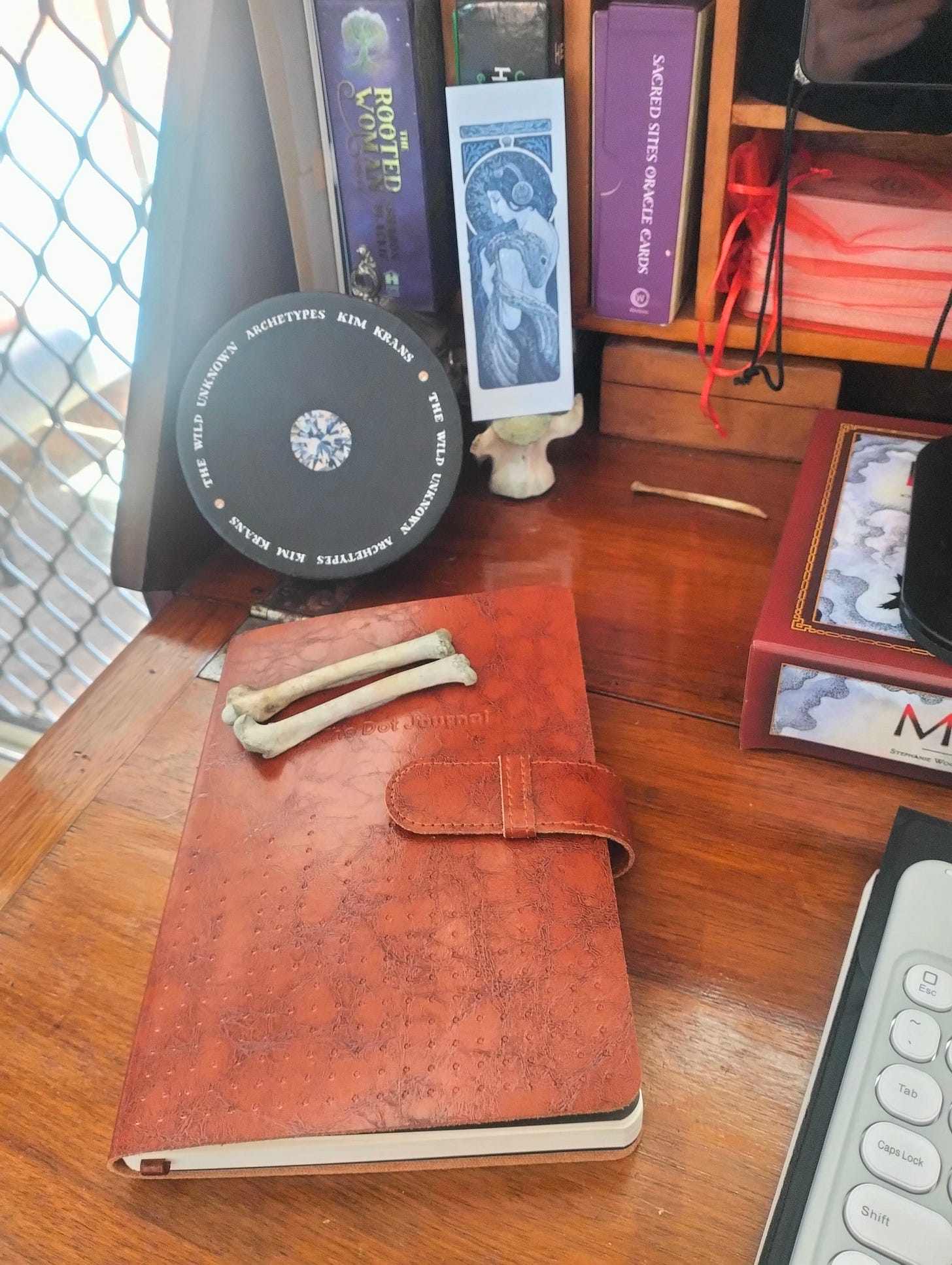 As mentioned before, the Omen days are really part of a larger threshold practice, and that includes the annual ritualistic purchase of a new journal. This year My emerging word energy is FECUND, and I wanted a journal that felt like it would hold and expand me in that energy. The leather scent and texture with the almost red earthy brown colour to me, felt fecund. Red brown earth reminds me so much of embers and dirt. This fecund energy has been revealing itself to me through my omens thus far, further rooting and centering me in the wider ceremonials.