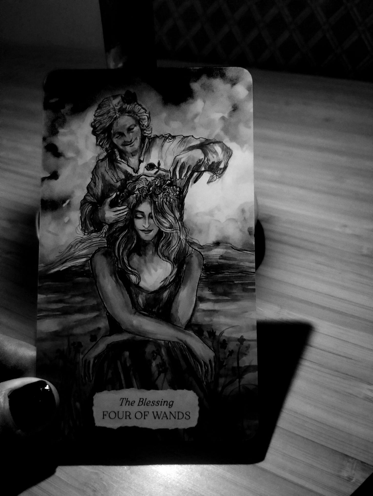 The piece that wants to be named here comes from The four of wands. In this deck the four of wands is called The blessing. This is another card that has been repeating in spreads over the last few weeks and it has been speaking to me about rites of passage. This card coming up as I think about the Virgo lunar eclipse and how this brings a closing energy to the Virgo south node eclipse cycle, concluding something, moving through something, releasing something, or even deeply integrating something that has been ongoing over the last year, feels deeply resonate and aligned to the idea of a rite of passage that requires recognition and celebration. I spoke about this in a reel recently on Instagram where I spoke to the loss of rites of passage through the conditions of empire. I feel deeply that in building communities both in person and through the webs of the online world, that as we connect more in spaces that contain more intimacy, we will also find ways to restore these celebrations of cyclical motion. In the world of mystics that I roll in, we do not have many spaces (especially safe ones) where we can celebrate our magic and its evolution, we are reduced to markers of success based in structures of academia and we tend to find labels to hide behind based on those credentials instead of embracing our complexity and sovereignty. It feels as though the energy of this card today is speaking to the release of the specifics that we have been conditioned to believe we need in order to move through these rites of passage into the next phase of our evolution, and that the energy of the eclipse itself will be a kind of initiation. This is an invitation to self anoint and celebrate this moment. My sense is that weather it’s on the eclipse itself or in the months after, you will know exactly when that moment has come to pass.